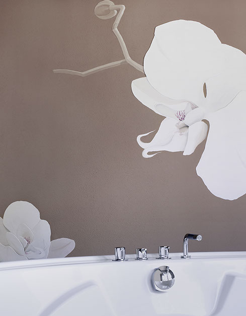 Detail Bio Sauna Wandbelag mit Handkeramik